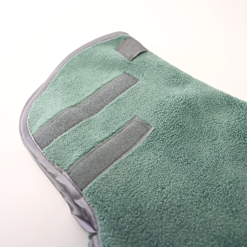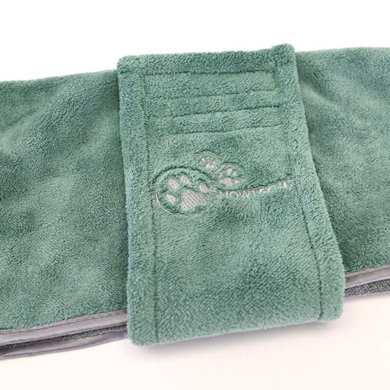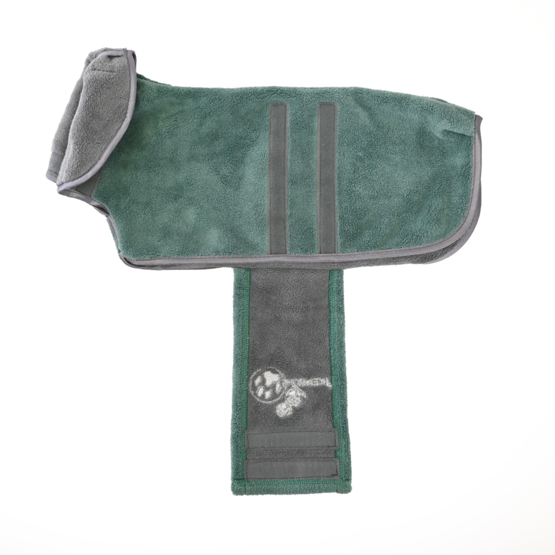 Deze geweldige jassen zijn gemaakt van een dubbele laag Coral Fleece van de beste kwaliteit. Hierdoor absorberen ze goed en drogen ze snel. De 2 verstelbare klittenbandensluitingen zorgen voor een perfecte pasvorm. Terwijl hij de jas draagt, kan je viervoeter zich hierdoor gemakkelijk en vrij bewegen. Perfect voor na een bad of na een wandeling om de binnenkant van je auto, vloer of de kooi van je hond te beschermen tegen vuil en water.