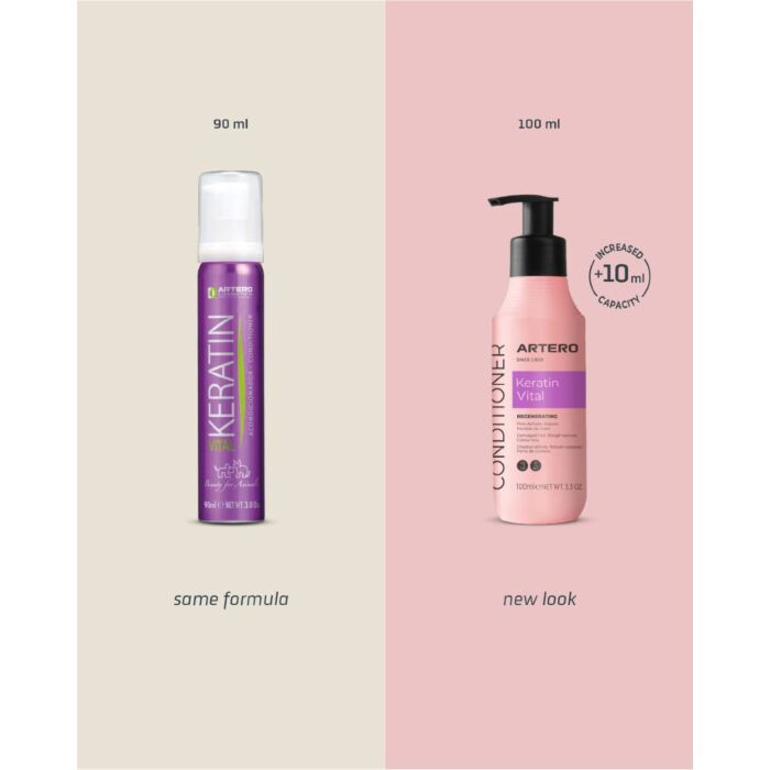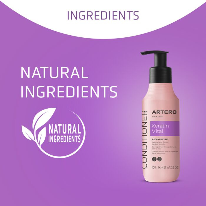 Keratin Vital van Artero is een conditioner die onmiddelijkde zachtheid en de glans van het natuurlijke haar herstelt , geeft een zijde glans en is makkelijk te kammen. Het herstelt de beschadigingen in de haarvezels en hersteld de haarstructuur. Beschermt langer en voedt het haar dieper dan een traditionele conditioner.