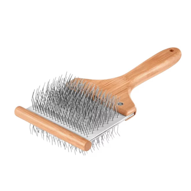 De borstel beschikt over extra dikke borstelpinnen die ervoor zorgen dat het ontklitten van een flink geklitte vacht sneller en gemakkelijker gaat.